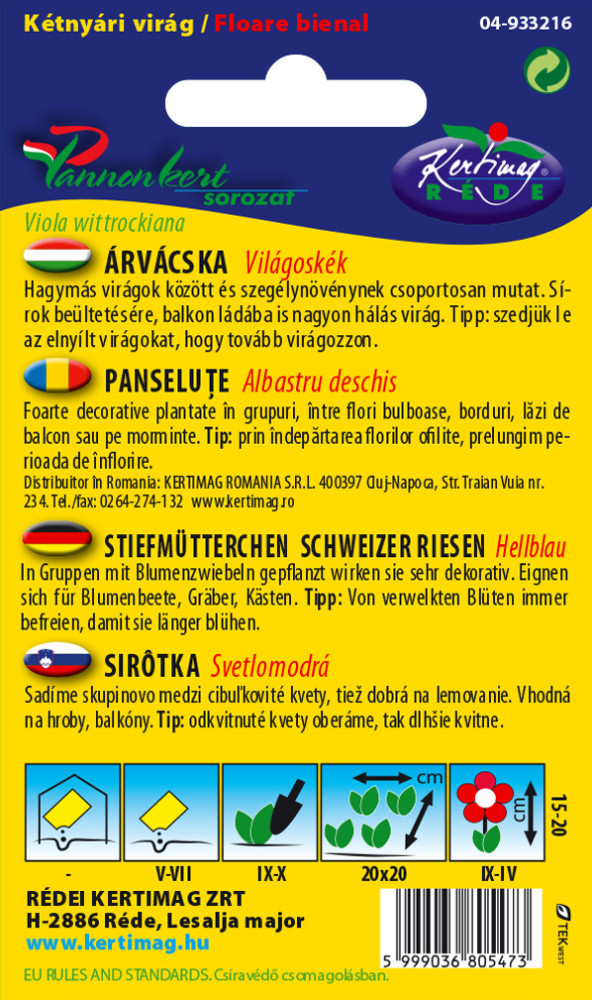 A legelterjedtebb és a legtöbb színben pompázó kétnyári növény. Virágágyak, sírok, ablakládák, kőedények tavaszi vagy őszi díszítésére használjuk. Ültethetjük önállóan vagy hagymás dísznövényekkel tárdítva. NApos, félárnyékos helyet, jó szerkezetű, nem túl meszes talajt kedvel. 15-20 cm magasra nő.