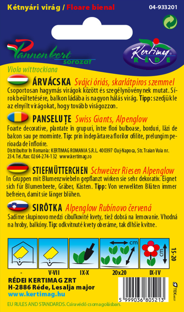 Kétnyári virág. Csoportosan hagymás virágok között és szegélynövénynek mutat. Sírok beültetésére, balkonládába is nagyon hálás virág. Tipp: szedjük le az elnyílt virágokat, hogy tovább virágozzon. 15 - 20 cm magasra nő.