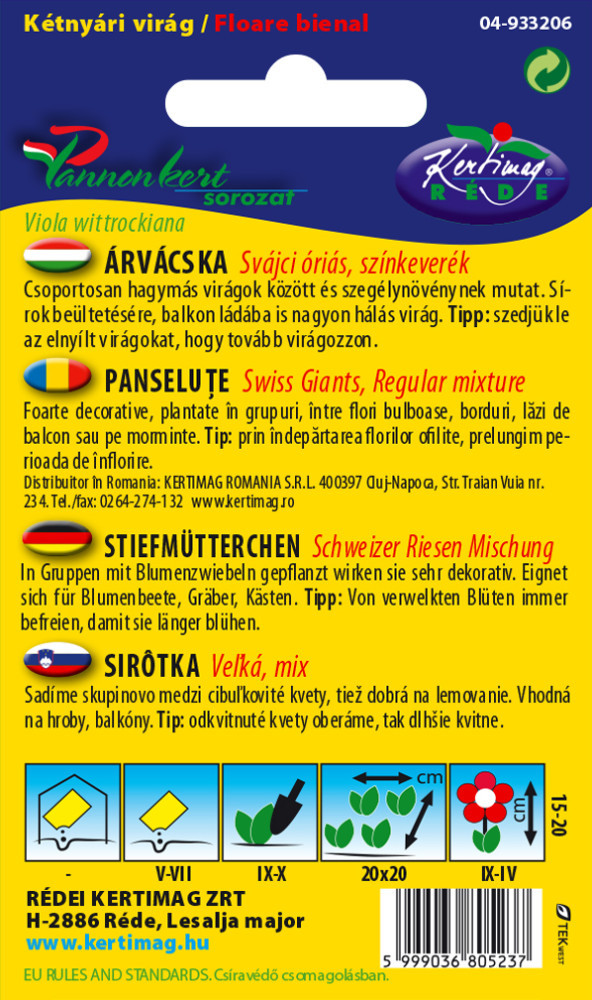A legelterjedtebb és a legtöbb színben pompázó kétnyári virág. A virágok 8-10 cm-es száron egy oldalra néznek, 5-9 cm-esek, vagy ennél nagyobbak. Napos, félárnyékos helyet igényel.