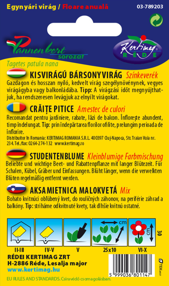 Bársonyvirág virágmag  kisvirágú színkeverék
