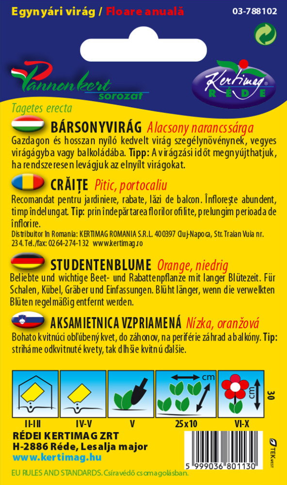 Bársonyvirág virágmag nagyvirágú alacsony narancssárga