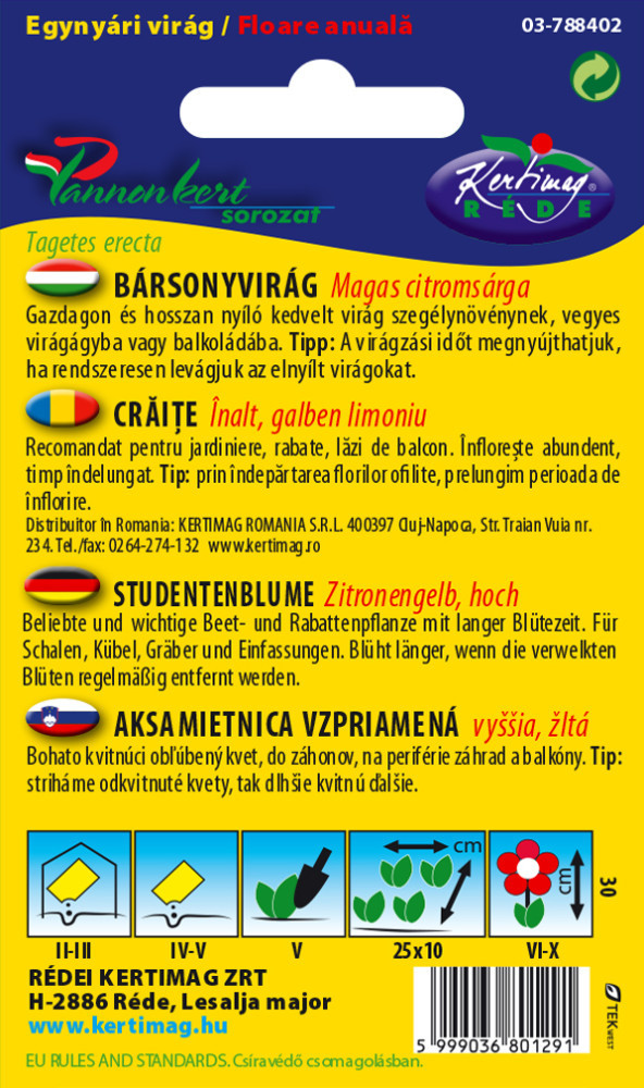 Bársonyvirág virágmag nagyvirágú magas citromsárga