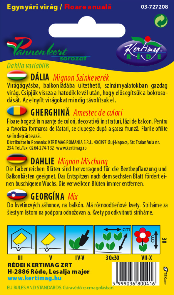 Dália vetőmag (Legényvirág), törpe, színkeverék, 1 g
