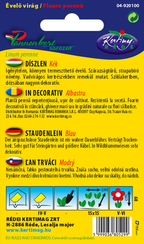 Vetés: IV-V. hó, 15 x 15 cm távolságra.