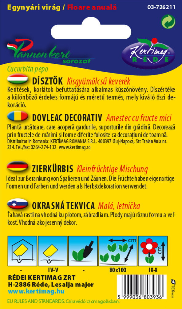 Kerítések, korlátok befuttatására alkalmas kúszónövény. Díszértéke a különböző értékes formájú és méretű (8-12 cm) színes, kemény termés, mely gyorsan szárad és kiváló őszi dekoráció.