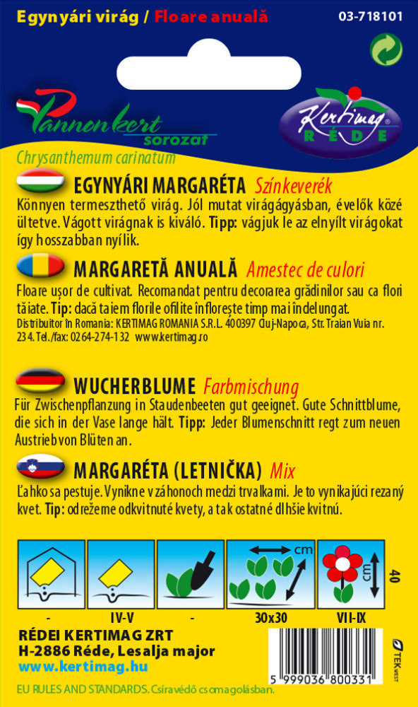 Egynyári margaréta vetőmag, színkeverék, 1 g