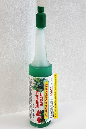 Felhasználható: Cserepes dísznövények és balkonnövényektápanyag utánpótlására márciustól októberig, 2-3 hetente az ampulla csúcsátlevágva és levágott végével a földbe szúrva. Nedves talajba szükségesalkalmazni.