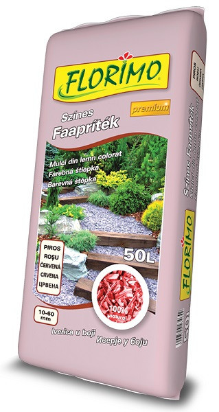 FLORIMO® Színes faapríték, piros, 50 liter (0,5 – 40 mm)