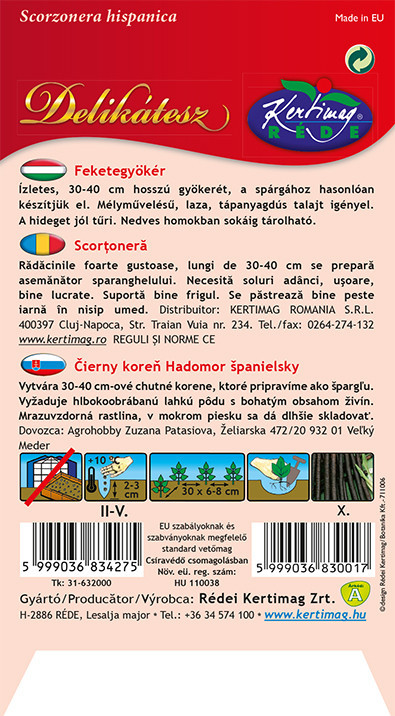 Hosszú, viszonylag sima gyökerű fajta. A gyökér eléggé letompított. Színe barna, de egészen fekete is lehet. Korai vetés esetén már az első évben is jó termést ad. Tenyészideje vetéstől a piacérettségig 6-7 hónap. Kétéves termesztésre is alkalmas.