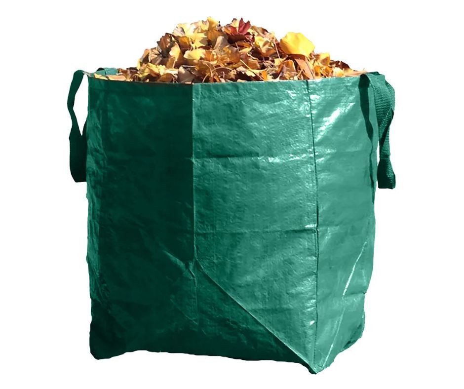 Zöld színû, levelek és kerti hulladék tárolására, mozgatására szolgáló zsák.
