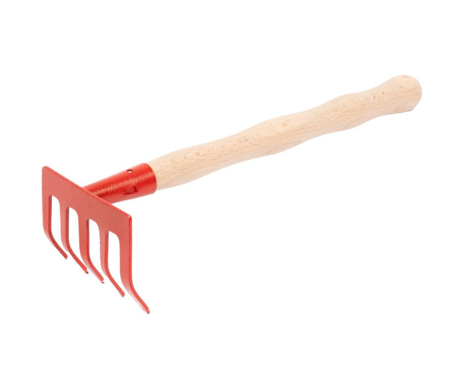 Kicsi, rövidnyelű lemezgereblye, különböző színekben, fa