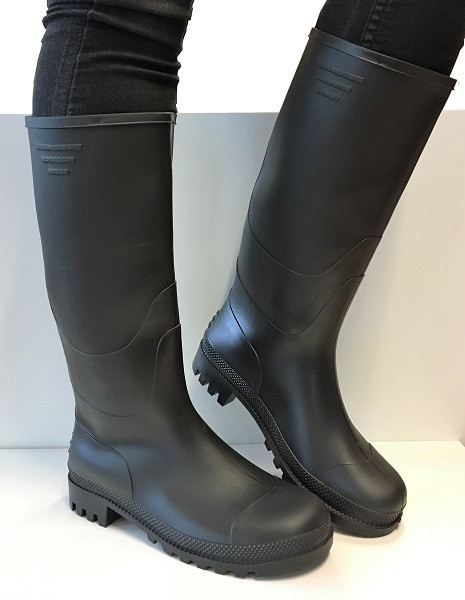 Olaszországban készült, fekete színű, hosszúszárú PVCgumicsizma.