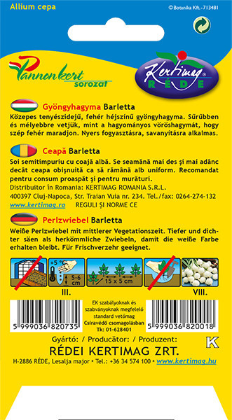Savanyításra! Közepes tenyészidejű (70 nap), fehér héjszínű gyöngyhagyma. Sűrűbben és mélyebbre vetjük, mint a hagyományos vöröshagymát, hogy szép fehér maradjon. Nyers fogyasztásra, savanyításra alkalmas.
