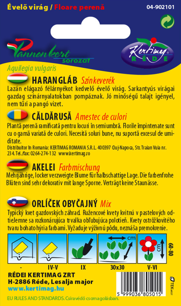 Lazán elágazó, 50-100 cm magas, évelő dísznövény. Hármasan tagolt, csipkés szélű levelei enyhén szőrösek. 4-6 cm-es virágai 5 színes csészelevélből és 5 sarkantyús sziromlevélből állnak, gazdag színárnyalatokban. Végleges helyére augusztus-szeptemberben ültethető. Virágzás után visszahúzódik. Legszebben üde, jó minőségű talajban, félárnyékban fejlődik.
