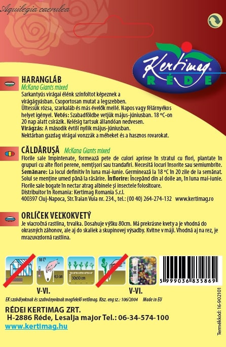 Aquilegia vulgaris. Évelő virág. 1 méteres színes virágokat hozó fajta vegyes színekben.