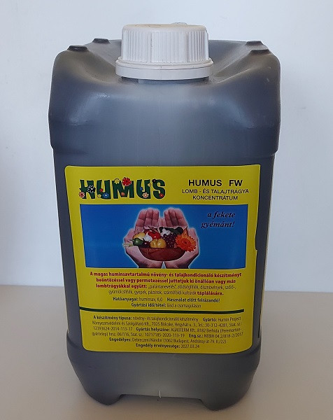 A humusz növényi anyagok természetes humifikációja során keletkezett szerves humuszásvány. Magas huminsavtartalma miatt világviszonylatban is egyedülálló termék a Humus FW. Magyarországon bányászott Leonardit alapanyagból kivont biológiailag aktív, természetes huminsavakat tartalmaz. A Humus FW a benne található HUMINSAVAK, FULVOSAVAK, valamint a makro-mikro elemek együttes hatása folytán serkenti a növények csírázását, gyökerezését és növekedését, ugyanakkor segíti a tápanyagok felvételét és a növényi nedvek keringését a növényi részekben.