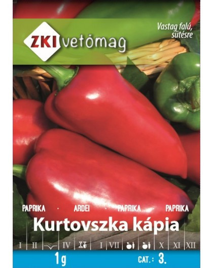 A Kápia paprika mag Kurtovszka 1g középkorai érésű kápia (hosszúkás, vastaghúsú), édes ízvilággal. Bőtermő, kiegyensúlyozott növekedésű, hobbikertben és fólia alatt is megbízható.