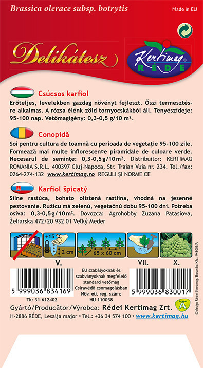 Erőteljes, levelekben gazdag növényt fejleszt. Őszi termesztésre alkalmas. Tenyészideje 95-100 nap. Vetőmagigény: 0,3-0,5 g/10 m2. A rózsa élénkzöld tornyocskákból áll, melyek főzés után is megőrzik színüket.