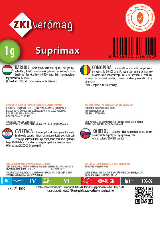 Késő nyári, kora őszi típus.Erőteljes növekedésű, kiváló levéltakarás jellemzi.A melegre nem érzékeny.Tenyészideje 80-100 nap.Friss fogyasztásra, fagyasztásra alkalmas.(A tasak kb. 200-250 szem vetőmagot tartalmaz.)