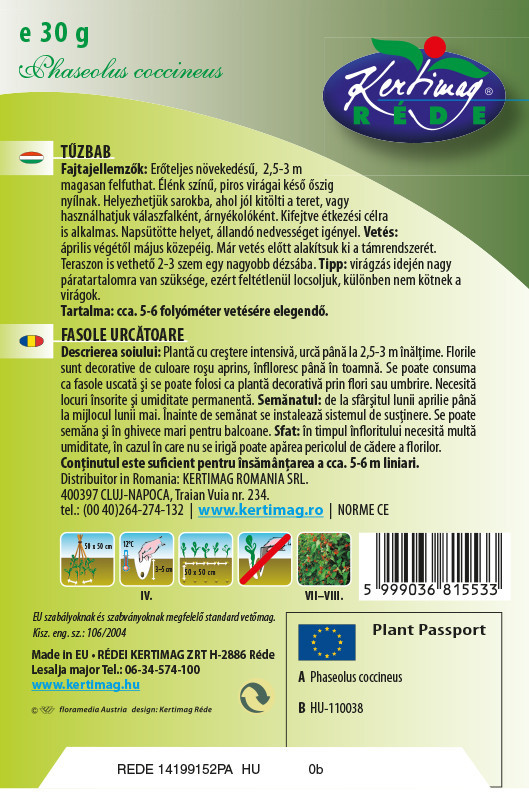 Dús, piros virágai miatt tűzbabnak is hívják ezt a babfajtát. Erőteljes növekedésű, sűrű falat képez, ezért térelválasztó- és takarónövénynek kiváló. Már vetéskor alakítsuk ki a támrendszerét, melyre 2,5-3 m magasan felfuthat. Élénk színű, piros virágai késő őszig nyílnak. Kifejtve étkezési célra is alkalmas.