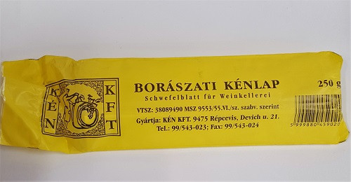 A kénlap egy szeletje 1 hl űrtartalmú hordó kénezéséhezelegendő. A hordó űrtartalmának figyelembevételével válassza ki a megfelelőmennyiséget (szükség esetén a szelet eltörhető). A kénlapot tűzze fel egydrótdarabra (rézdrót kerülendő). Az így elkészített egységet a szeletektetejénél gyufával vagy öngyújtóval gyújtsa meg, a kén halvány lánggal ég. Ezta mennyiséget helyezze a hordó szájába, majd dugja a dugót a hordóba és a drótvégét fordítsa a hordóra. 24 óra elteltével emelje ki a drótot a hordóból,ügyelve arra, hogy a szeletek maradványai egyben maradjanak.