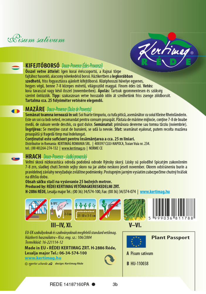 Áttelelő, akár ősszel is a hó alá vethető egyik legkorábbi fajta a Douce Provence kifejtőborsó. Nagyon korai, alacsonyra növő fajta. Bizonyos körülmények között támrendszer nélkül is termeszthető. Kb. 50-60 cm magasra nő.