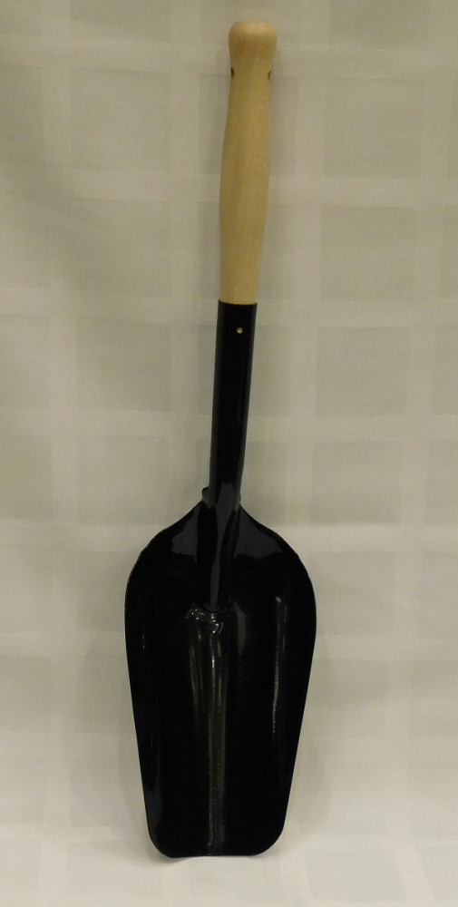Esztergált, kényelmes fogású fa nyéllel, szépen alakítottlapát résszel látták el ezt a mutatós szeneslapátot.