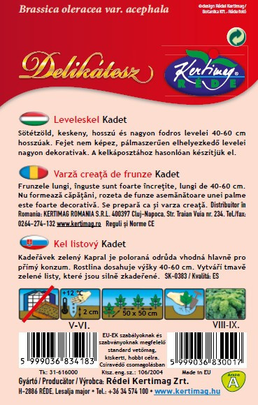Középkésői leveleskel. Zömök növény, 60-80 cm magas. levele középzöld, erősen fodrozott. Fagytűrő -15 Celsius fokig.