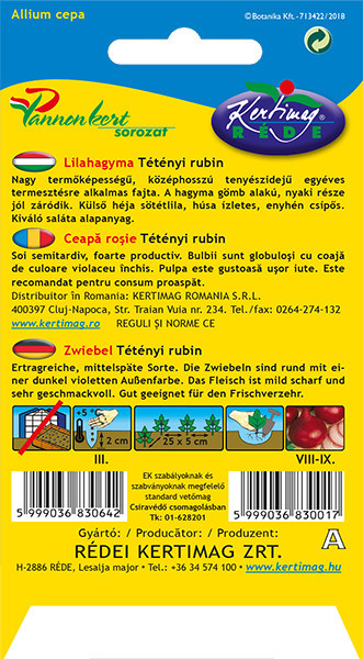 Nagy termőképességű, jól tárolható salátahagyma! Tenyészideje (a vetéstől) 126 nap. A hagyma lapított gömb alakú, 109 g átlagtömegű, külső és belső pikkelylevelei kárminpirosak. Elsősorban friss fogyasztásra alkalmas, de tárolásra is kiváló, kiváló saláa alapanyag.