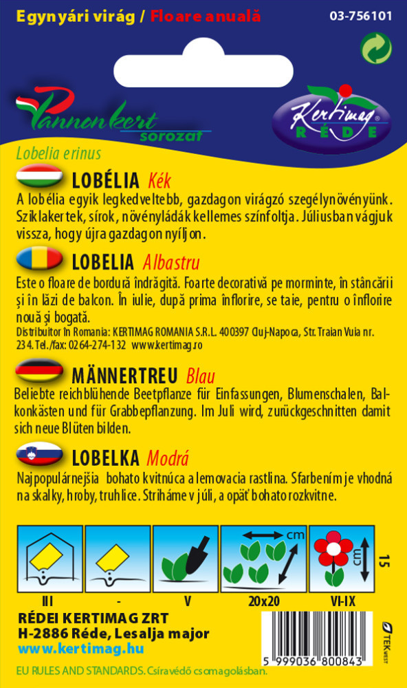 Mézillatú, alacsony, pávaszerű virág. Apró kék virágai egész nyáron át nyílnak.