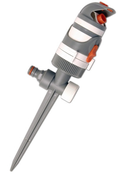 Csendes működésű, egyenletes öntözést biztosító locsolófej.Elcsúsztatható lapkával válthatunk a távoli, vagy a közeli öntözés között.