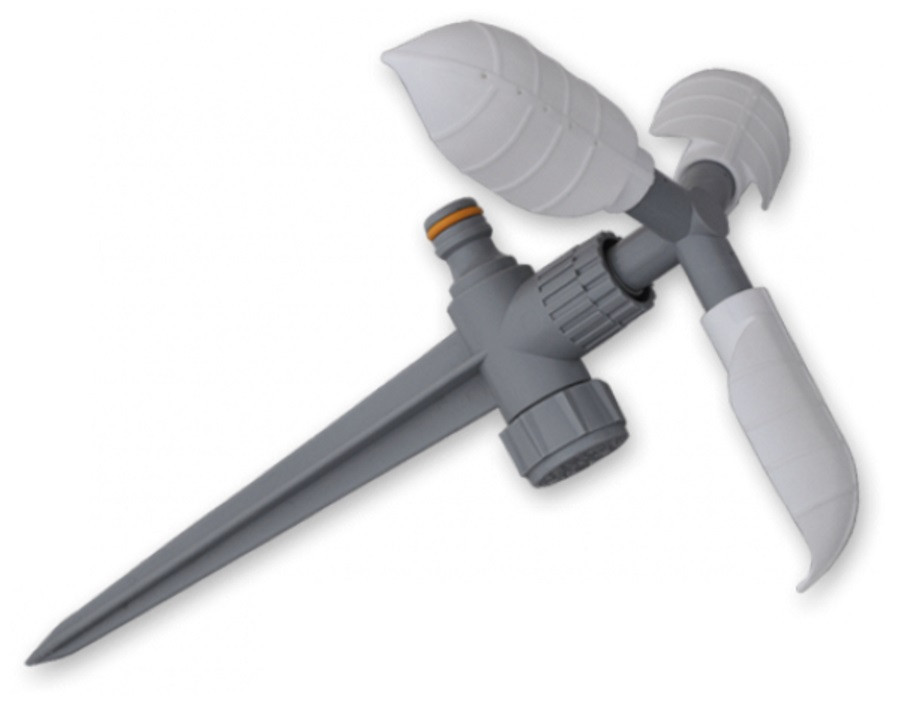 3 műanyag forgó szórófejjel felszerelt locsolófej. Mindháromtoll állítható, karonként öt porlasztó lyuk van.