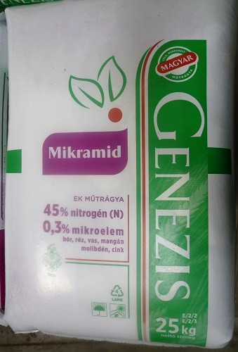 Talaj-, illetve fejtrágyaként: 100-200 kg/ha (1kg/100m2)Mikramid, amely kiszórása a szokásos módon, a nitrogén műtrágyázásidőpontjában történhet.