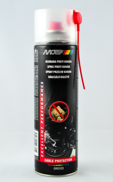 Átlátszó, szagtalan spray, mely az alkatrészeken, kábelekenragadós védőfelületet képez. Alkalmas nyest, nyuszt, menyét kártétele ellen,