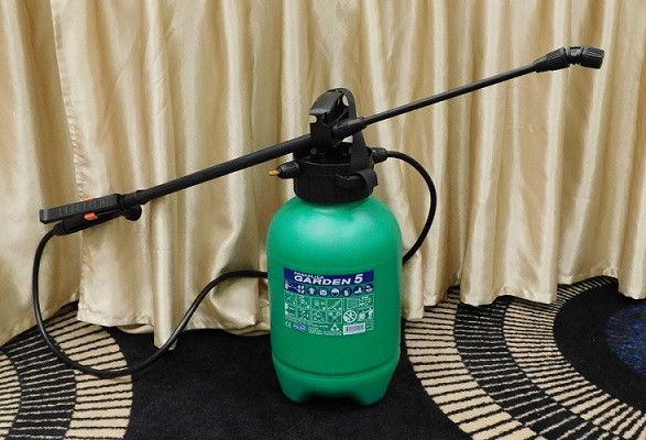 5 liter űrtartalmú, Polins márkájú túlnyomásos permetezőnyéllel, vállpánttal, állítható fejjel. Növények permetezésére, frissítésérehasználható.