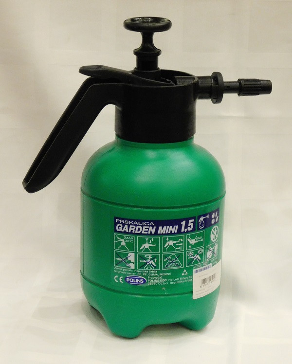Polins márkájú, 1,5 literes pumpás kézi permetező, állíthatószórófejjel.