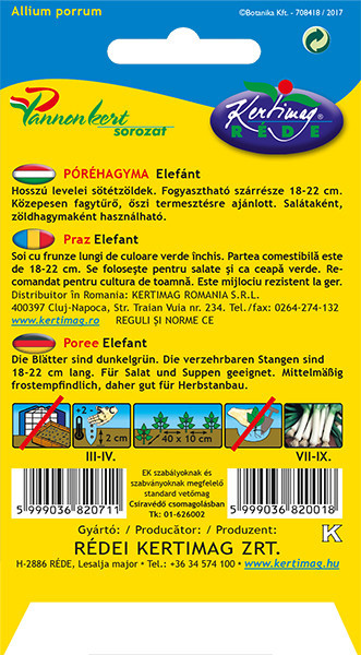 Őszi-téli termesztésre, közepesen fagytűrő! Hosszú levelei sötétzöldek. A levelek fogyasztható szárrésze 18-22 cm hosszú. Salátaként, zöldhagymaként fogyasztható.