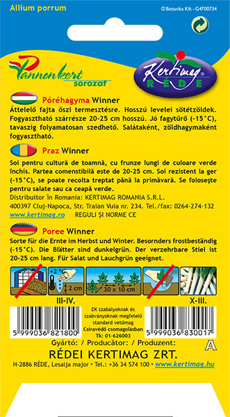 Áttelelő fajta őszi termesztésre. Jó fagytűrő (-15 °C), tavaszig folyamatosan szedhető. Hosszú levelei sötétzöldek. Fogyasztható szárrésze 20-25 cm hosszú. Salátaként, zöldhagymaként ideális.