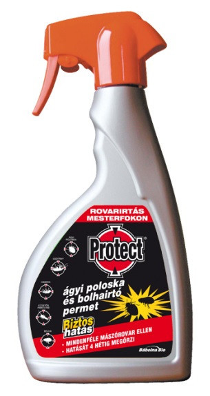 Zárt térben, vérszívó rovarok (ágyi poloska, bolha) és egyébmászó rovarok irtására felhasználható rovarirtó permet. A Protect® ágyi poloskaés bolhairtó permet korszerű összetételénél fogva nemcsak kiűzi és letaglózza arejtőzködő rovarokat, de a rovarfejlődés-gátló hatóanyaga, az S-metoprénmegszakítja a rovarok életciklusát azzal, hogy megakadályozza azok felnőttegyedekké történő fejlődését. A készítmény szintetikus piretroidokkal szembenrezisztens kártevők kiirtására is alkalmas.