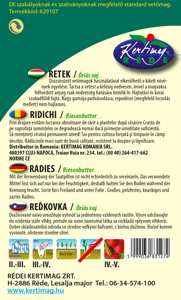Hajtatásra és korai szabadföldi termesztésre alkalmas, gömbölyű, élénkpiros, nagy gumójú fajta. Jó minőségű, 40-50 napos tenyészidejű hónapos retek. Pudvásodásra, repedésre nem hajlamos. Lombja közép nagy, világoszöld.