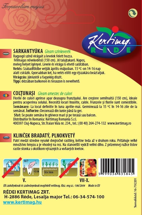 Felhasználás: virágágyak, balkonládák, edények díszítésére kiváló. Zöldségeskertben elűzi a levéltetűket, tripszeket, a káposztalepkét. Vessünk ezek közé egy-egy sort, vagy az ágyások szélére. A gyomokat is elnyomja.