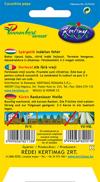 Rövid típusú fajta, rövid indákat fejleszt. Termése hengeres. Másodvetésre is alkalmas. Fészkenként 2-3 magot vetünk.
