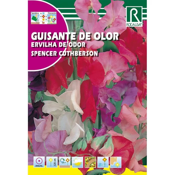 Hüvelyes növény. Egynyári  fajta nagy méretű, nagy virággal, pillangó alakú illatos, fehér és sötét ibolya színben.Vágott virágként és a kertben használják.Jó szerkezetű talajt, mérsékelt öntözést igényel. Napfénykedvelő. Felhasználás: illatos vágott virág és szép kerti dísz. A tasak tartalma: 10g.  Idő:márc. vége-ápr.15x30 cmjún.-júl.Hőmérséklet: 18oC  Vetésmélység:2cm  Virágmagasság:  120 cm Paraméterek Vetés/ültetés ideje (szabadföldi) (-tól) Február Vetés/ültetés ideje (szabadföldi) (-ig) Május Betakarítás ideje (-tól) Március Betakarítás ideje (-ig) Augusztus