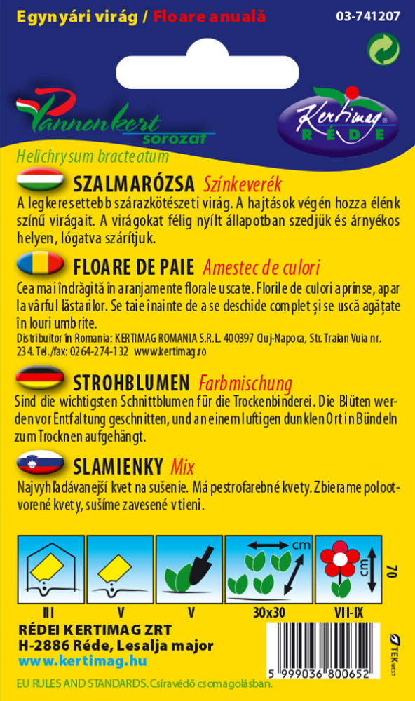 Szalmarózsa vetőmag, színkeverék, 1 g