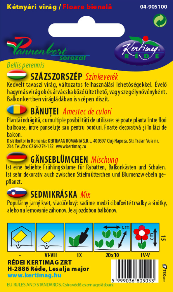Kétnyári, telt virágú, kedvelt tavaszi virág. Alacsony, fagytűrő. Pázsit közé vetve üde színfolttal gazdagítja kertünket vagy udvarunkat. Talajtakaróként, szegélynövényként, virágládába vagy sziklakerti díszként is használhatjuk. Tápanyagban gazdag, humuszos-agyagos talajt és félárnyékos helyet igényel.