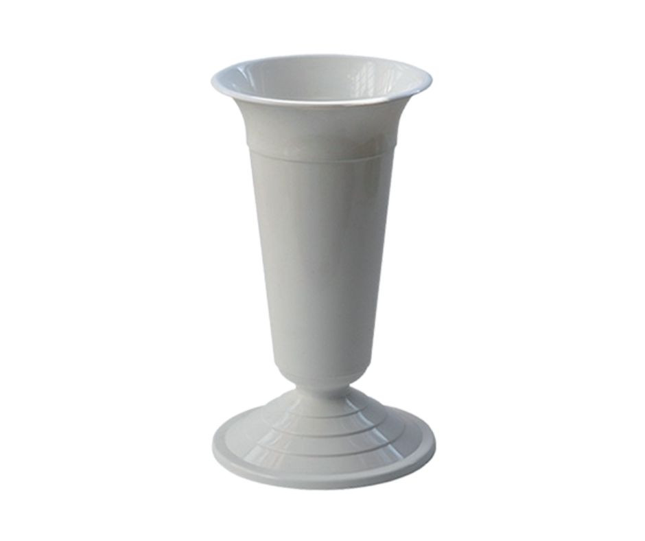 35 cm-es fehér temetői virágváza beton nehezékkel.