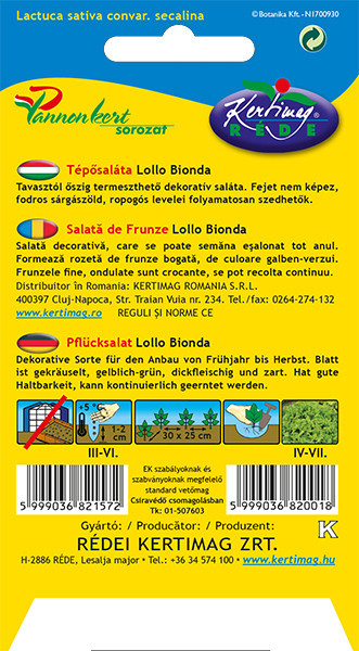 Saláta vetőmag, Lollo Bionda tépősaláta, 2 g