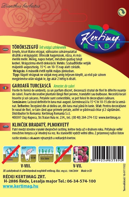 40-80 cm magas. 1,5-2 cm-es virágai 12-16 cm-esernyős virágzatban nyílnak, illatosak. A virágok fehér, rózsaszín, piros színűek, vagy tarkák. Eredetileg évelő virág, de nálunk csak két évig termesztik. A kelésig árnyékolni kell. Szeptemberben ültetjük állandó helyére. Jó szerkezetű kerti talajban fejlődik legszebben, de szélsőséges talajviszonyok között is megél. Kiváló vágott virág, virágágyi kiültetésre is használható.