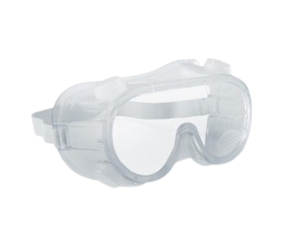 Víztiszta, indirekt szellőzésű védőszemüveg.