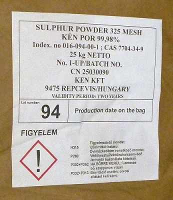 Hatóanyag tartalom (S): Kén (S) 99,9 %